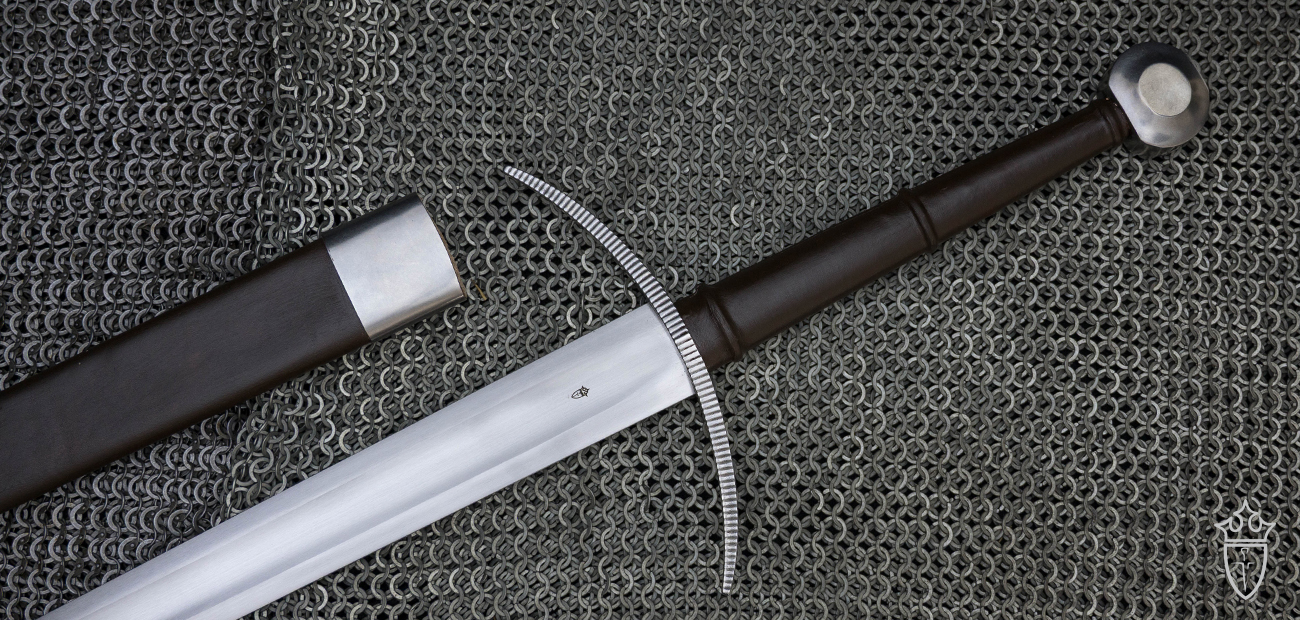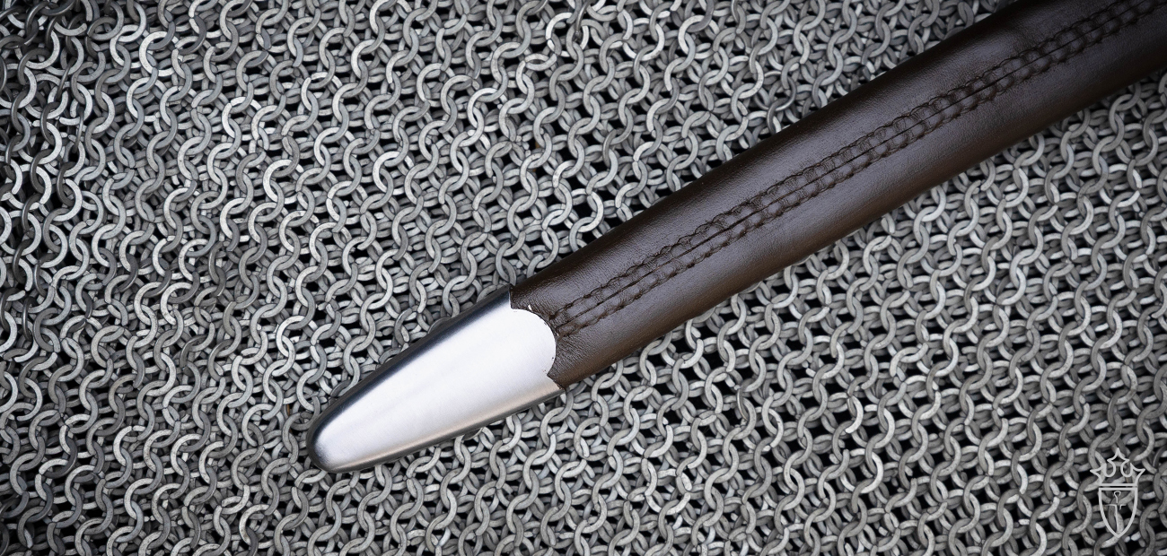 Another innovation is the provision of an all-leather scabbard, in contrast with the rigid scabbards normally provided with our Practical swords - this is designed both to provide an extra margin of safety when combatants fall on the scabbard in battle and also to minimize the need for replacement scabbards.