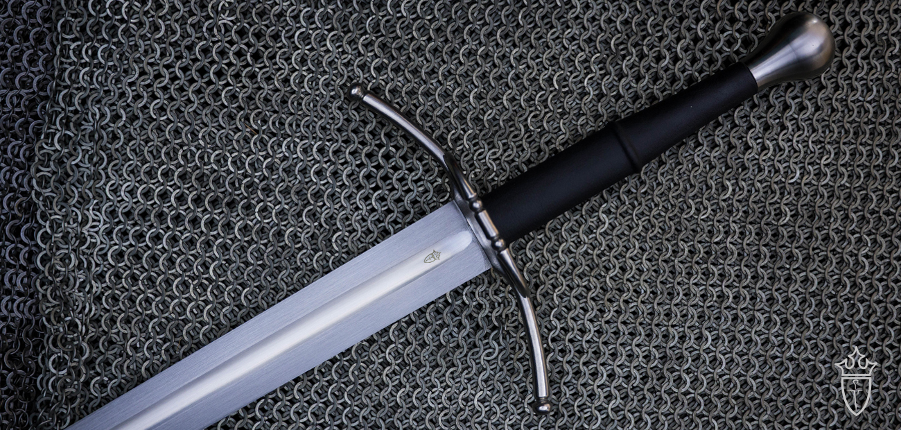Our Rhinelander Bastard Sword returns under the Kingston Arms brand. Refined and better balanced than its predecessor, our new version delivers devastating cuts and penetrating thrusts. A new 7" leather wrapped grip tapers evenly in the hand and allows for excellent purchase both single and two-handed. The peened pommel is smooth and seamless fitting perfectly in the palm of most hands. A deep ridged fuller offers a unique blade profile ideal for cut and thrusts.
