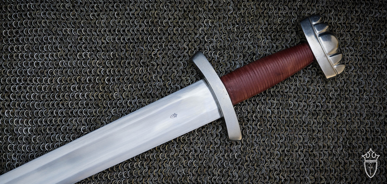 Our Tourney Series Sparring and Stage Swords from Kingston Arms will set a new standard in this price point of re-enactment weaponry. Features like thru-tang handle construction, peened stainless steel pommel and guard, 2mm rounded edge thickness make these two brutal weapons on the battle field. The cord wrapped leather grip feels exceptional in the hand with an oval cross section and slight barrel shape to keep fatigue at bay. The grip is large enough to accomodate armoured hands. A respectable fuller runs the length of both pieces to lighten and counter balance the swords overall. A wood core and leather wrapped scabbard tipped with a stainless chape comes with each sword. The first Tourney Series models are the Viking Sword and Single-hand Swords with others coming soon.